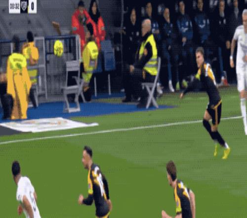 第16分钟,库尼亚在昆卡的拉拽之下进入禁区后倒地,裁判第一时间判罚点球。但通过慢镜头可以看到,昆卡在库尼亚进入禁区前已经放手,裁判改判任意球。