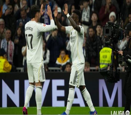 第15分钟,皇马打出快速反击,维尼修斯沿着左路进入禁区,以一敌三,兜射远角,打破僵局。